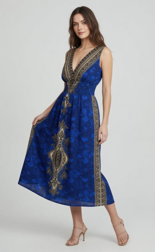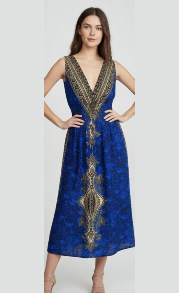 Bohemian Embroidered Midi Dress Blue