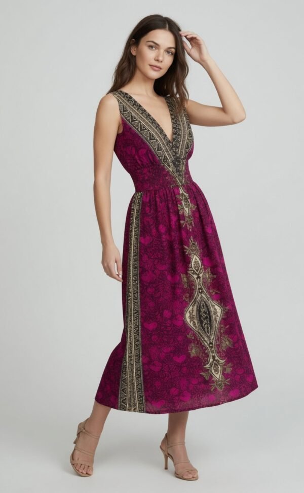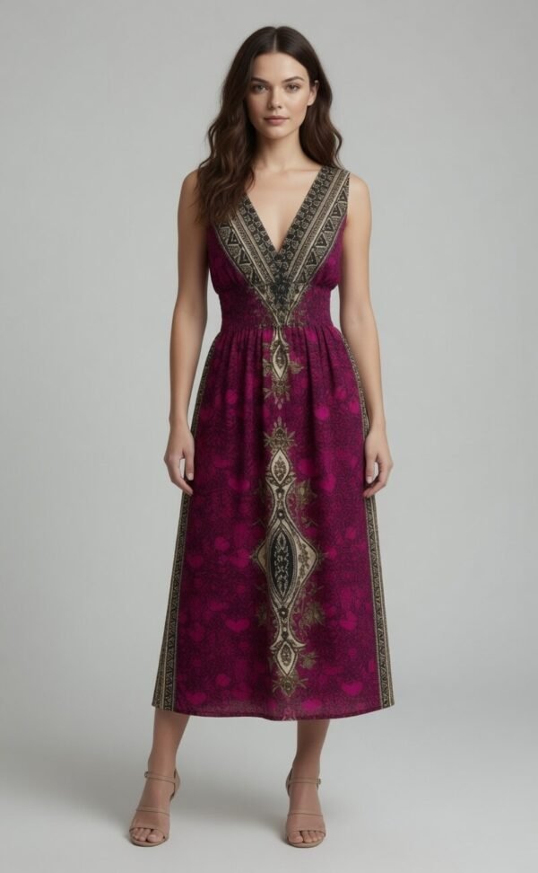 Bohemian Embroidered Midi Dress Pink